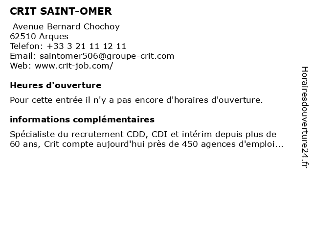 Termes de recherche pour CRIT SAINT-OMER:saint, omer, crit |