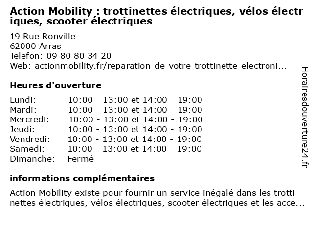 | Lundi | 10:00-13:00 et 14:00-19:00 |