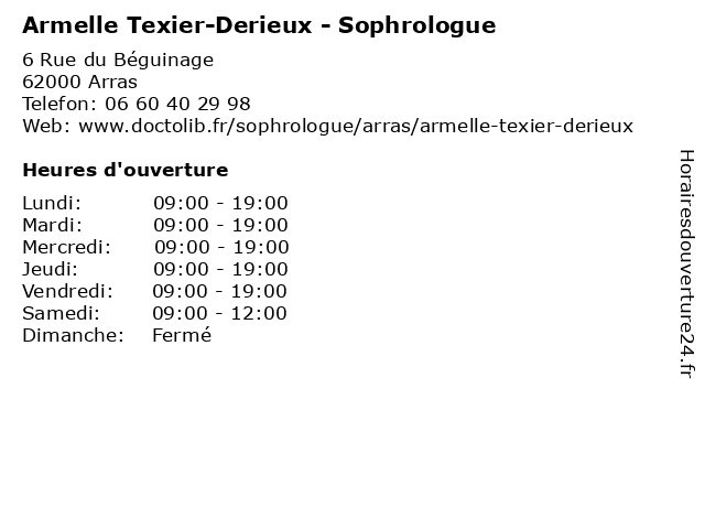 1 Dr Agnès Texier - Radiologue (Distance: 0,35 km) 3 Boulevard Besnier, 62000 Arras agnès, consultation, docteur, dr, med, médecin, médecine, radiologue, texier, traitement 2 Dr Armelle Pambou - Pédiatre (Distance: 0,35 km) 3 Boulevard Besnier, 62000 Arras armelle, consultation, docteur, dr, med, médecin, médecine, pambou, pédiatre, traitement 3 Cousin Malvina - Sophrologue (Distance: 1,07 km) 16 Rue Héronval, 62000 Arras cousin, malvina, medecin, sante, sophro, sophrologue 4 Dr Agnes Texier - Radiologue (Distance: 1,43 km) 7 Boulevard de Strasbourg, 62000 Arras agnes, consultation, docteur, dr, med, médecin, radiologue, texier, traitement 5 Omkalthoum Charef - Sophrologue (Distance: 2,10 km) 4 Rue du Dr Forgeois, 62000 Arras charef, medecin, omkalthoum, sante, sophro, sophrologue 6 Julie Lodynski - Sophrologue (Distance: 13,91 km) 19 Rue Victor Hugo, 62800 Liévin julie, lodynski, medecin, sante, sophro, sophrologue |