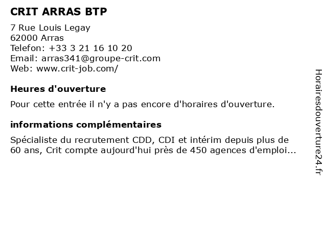 | Appeler CRIT ARRAS BTP | |