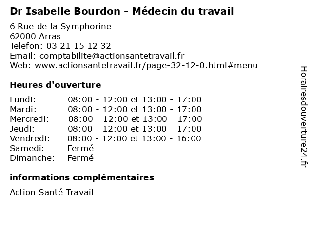 1 Action Santé Travail (Distance: 0,00 km) 6 Rue de la Symphorine, 62008 Arras action, centre, d'arras, famille, médical, santé, symphorine, travail 2 Dr Christian Ausecache - Médecin du travail (Distance: 0,00 km) 6 Rue de la Symphorine, 62000 Arras ausecache, christian, consultation, docteur, dr, du, med, médecin, traitement, travail 3 Dr Marielle Baudelet - Médecin du travail (Distance: 0,00 km) 6 Rue de la Symphorine, 62000 Arras baudelet, consultation, docteur, dr, du, marielle, med, médecin, traitement, travail 4 Dr Roberto Boidin - Médecin du travail (Distance: 0,00 km) 6 Rue de la Symphorine, 62000 Arras boidin, consultation, docteur, dr, du, med, médecin, roberto, traitement, travail 5 Dr Michel Boilot - Médecin du travail (Distance: 0,00 km) 6 Rue de la Symphorine, 62000 Arras boilot, consultation, docteur, dr, du, med, michel, médecin, traitement, travail 6 Bourdon Sophie (Distance: 4,08 km) Etage 3Eme, 62000 Arras bailleurs, biens, bourdon, immobiliers, nra, sophie |