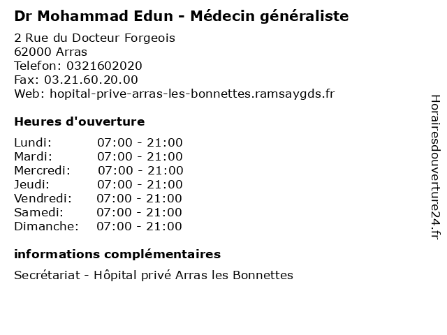 | Lundi | 07:00-21:00 |