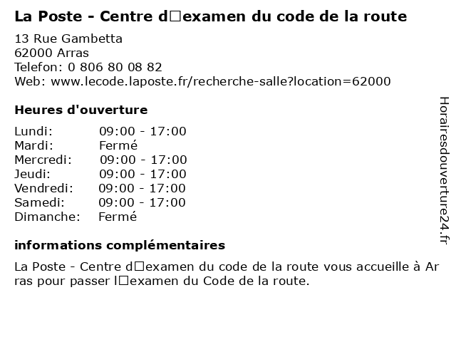 Termes de recherche pour La Poste - Centre d’examen du code de la route:poste, la, du, de, route, centre, code, d’examen, centre d'évaluation scolaire, école technique |