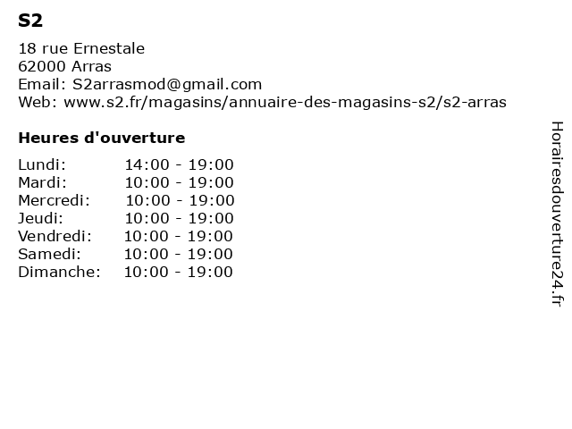 1 Sport 2000 (Distance: 0,01 km) 18 Rue Ernestale, 62000 Arras 2000, course à pied, mode, multisport, s2, sport 3 S2 Sneakers Specialist (Distance: 44,95 km) 24 rue de Dunkerque, 59280 Armentières boutique, chaussures, marque, prêt à porter, s2, sneakers, specialist 5 Naf Naf (Distance: 0,01 km) 14-16 Rue Ernestale, 62000 Arras accessoires, article, femme, mode, naf, vêtements 6 Symbiose Collection (Distance: 0,02 km) 10 Rue Ernestale, 62000 Arras accessoires, boutique, collection, habillement, mode, symbiose |