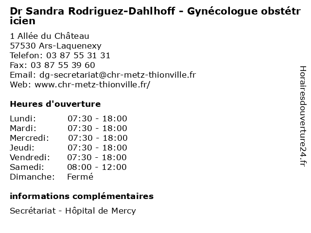 1 Dr Sandra Rodriguez-Dahlhoff - Gynécologue obstétricien (Distance: 0,23 km) 1 Rue Marie Coëtlosquet, 57245 Peltre consultation, dahlhoff, docteur, dr, gynécologue, med, médecin, obstétricien, rodriguez, sandra, traitement 2 Dr Marie-Laure Eszto-Cambon - Gynécologue obstétricien (Distance: 0,00 km) 1 Allée du Château, 57530 Ars-Laquenexy cambon, consultation, docteur, dr, eszto, gynécologue, laure, marie, med, médecin, obstétricien, traitement 3 Dr Khaled Merdassi - Gynécologue médical et obstétrique (Distance: 3,75 km) 17 Rue de Sarre, 57070 Metz bebe, dr, et, gynecologie, gynécologue, khaled, maternite, merdassi, médical, obstetrique, obstétrique 4 Dr Nora Bentouati-Minetti - Gynécologue obstétricienne (Distance: 4,01 km) 1 Rue de Sarre, 57070 Metz bebe, bentouati, dr, gynecologie, gynécologue, maternite, minetti, nora, obstetrique, obstétricienne 5 Dr Carl Saunier - Gynécologue médical et obstétrique (Distance: 4,19 km) 97 Rue Claude Bernard, 57070 Metz bebe, carl, dr, et, gynecologie, gynécologue, maternite, médical, obstetrique, obstétrique, saunier 6 Dr Aurélie Pelissier - Gynécologue médicale et obstétrique (Distance: 4,19 km) 97 Rue Claude Bernard, 57070 Metz aurélie, bebe, dr, et, gynecologie, gynécologue, maternite, médicale, obstetrique, obstétrique, pelissier |