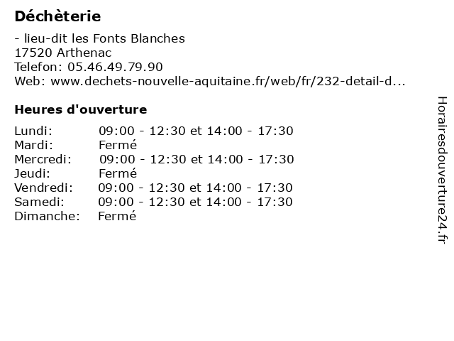 | Lundi | 09:00-12:30 et 14:00-17:30 |