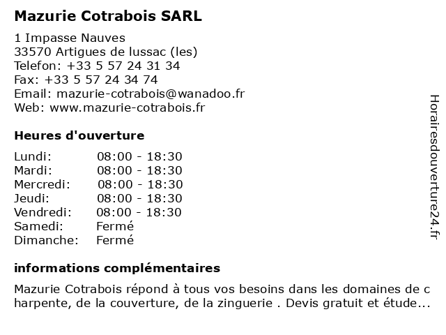 Termes de recherche pour Mazurie Cotrabois SARL:sarl, mazurie, cotrabois |