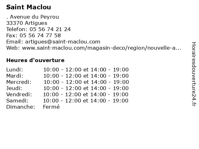 | Samedi | 10:00-12:00 et 14:00-19:00 |