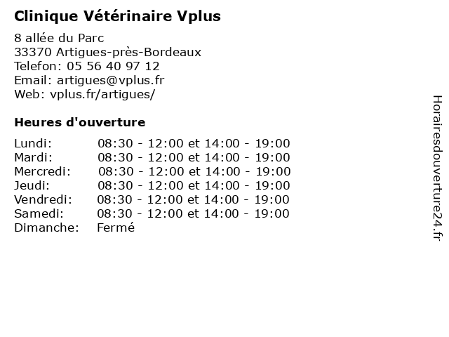 | Samedi | 08:30-12:00 et 14:00-19:00 |