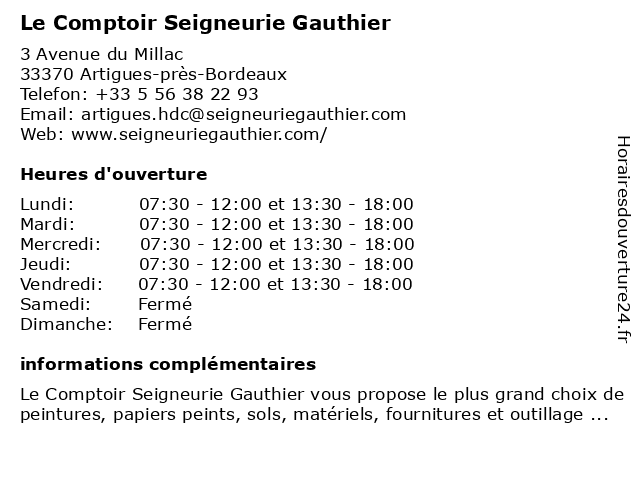 | Lundi | 07:30-12:00 et 13:30-18:00 |