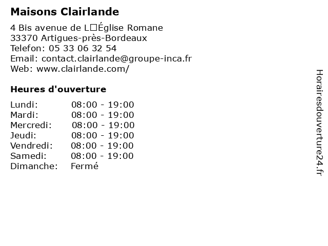 | Samedi | 08:00-19:00 |