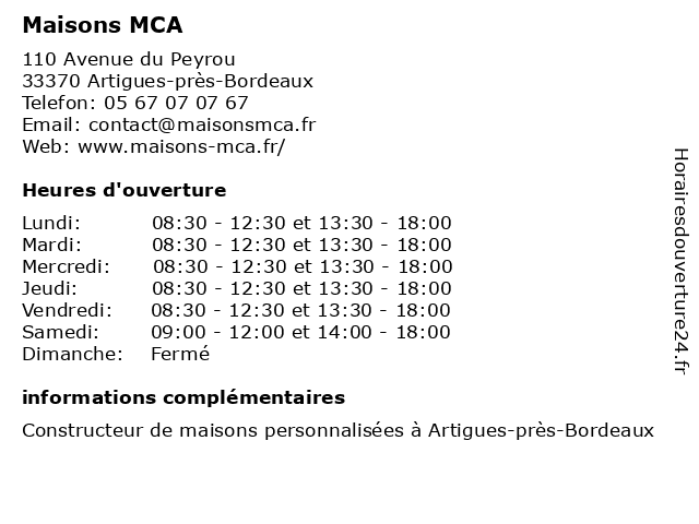 1 Maisons MCA (Distance: 4,61 km) 2 Chemin Belle Etoile, 33370 Tresses agences, constructeurs, maisons, mca, projets 2 Maisons MCA (Distance: 6,53 km) - Parc des Expositions, 33000 Bordeaux agences, constructeurs, maisons, mca, projets 3 Maisons MCA (Distance: 12,62 km) 154 Avenue de Saint Médard, 33320 Eysines agences, constructeurs, maisons, mca, projets 4 Maisons MCA (Distance: 12,96 km) 41 Cours du Général de Gaulle, 33170 Gradignan agences, constructeurs, maisons, mca, projets 5 Maisons MCA (Distance: 14,54 km) 16 Place du Champ de Foire, 33240 Saint-André-de-Cubzac agences, constructeurs, maisons, mca, projets 6 Maisons MCA (Distance: 15,90 km) 30bis Boulevard Victor Hugo, 33670 Créon agences, constructeurs, maisons, mca, projets |
