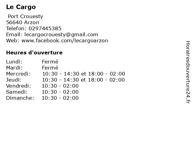 Termes de recherche pour Le Cargo:boissons, le, arzon, restaurants, cargo, collations |