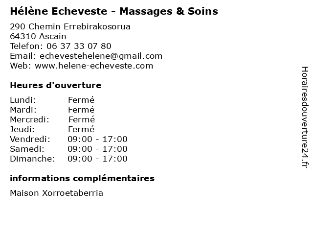 Termes de recherche pour Hélène Echeveste - Massages & Soins:helene, bien-être, santé, soins, echeveste, massages, relaxation |