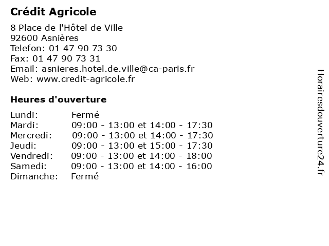 1 Crédit Agricole (Distance: 1,83 km) 75 Rue Voltaire, 92300 Levallois-Perret agence, agricole, assurance, bancaire, banque, crédit 2 Crédit Agricole (Distance: 2,67 km) 68 Rue Pierre Timbaud, 92230 Gennevilliers agence, agricole, assurance, bancaire, banque, crédit 3 Crédit Agricole (Distance: 3,27 km) 5 Rue Anselme, 93400 Saint-Ouen-sur-Seine agence, agricole, assurance, bancaire, banque, crédit 4 Crédit Agricole (Distance: 3,34 km) 47 rue de Bezons, 92400 Courbevoie agricole, credit, crédit, du, l'argent, l'épargne, le crédit, les banques, les prêts, nord 5 Crédit Agricole (Distance: 3,39 km) 9 quai du Président Paul Doumer, 92920 COURBEVOIE agricole, credit, crédit, du, l'argent, l'épargne, le crédit, les banques, les prêts, nord 6 Crédit Agricole (Distance: 3,91 km) 76 Avenue de Wagram, 75017 Paris agence, agricole, assurance, bancaire, banque, crédit |