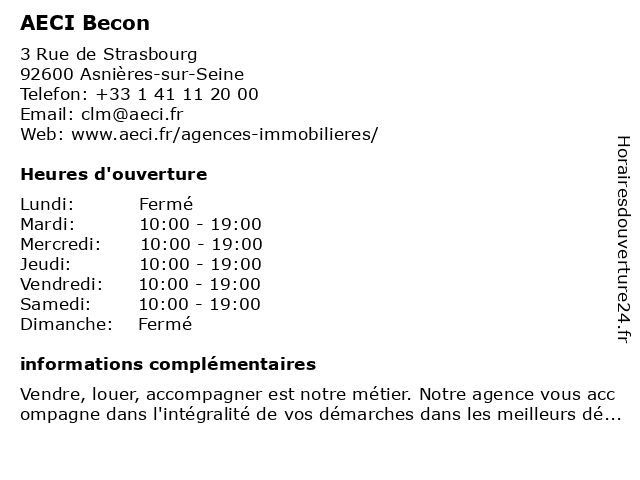 Horaires d'ouverture |