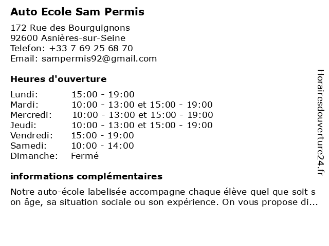 | Mercredi | 10:00-13:00 et 15:00-19:00 |