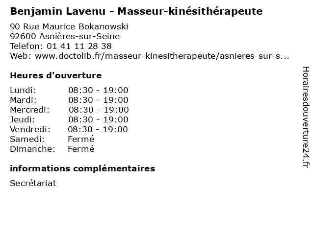 | Lundi | 08:30-19:00 |