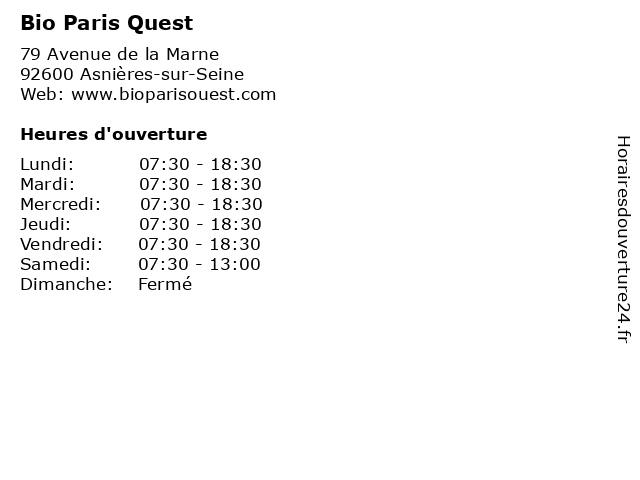 1 Bio Paris Quest (Distance: 1,94 km) 2 Place Général Leclerc, 92300 Levallois-Perret bio, biologique, laborataire, paris, quest, santé, services 2 Bio Paris Quest (Distance: 2,22 km) 6 Rue Barbès, 92300 Levallois-Perret bio, biologique, laborataire, paris, quest, santé, services 3 Bio Paris Quest (Distance: 2,57 km) 1 Place Hérold, 92400 Courbevoie bio, biologique, laborataire, paris, quest, santé, services 4 Bio Paris Quest (Distance: 3,01 km) 54 Rue de Bezons, 92400 Courbevoie bio, biologique, laborataire, paris, quest, santé, services 5 Bio Paris Quest (Distance: 3,17 km) 94-96 Boulevard de la République, 92250 La Garenne-Colombes bio, biologique, laborataire, paris, quest, santé, services 6 Bio Paris Quest (Distance: 4,05 km) 456 Rue Gabriel Péri, 92700 Colombes bio, biologique, laborataire, paris, quest, santé, services |