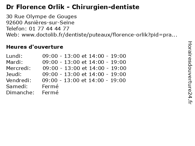 | Lundi | 09:00-13:00 et 14:00-19:00 |