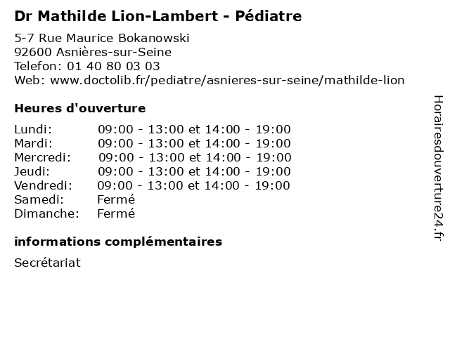 Termes de recherche pour Dr Mathilde Lion-Lambert - Pédiatre:asnieres, seine, mathilde, lion, lambert, dr, pédiatre, 92600 |