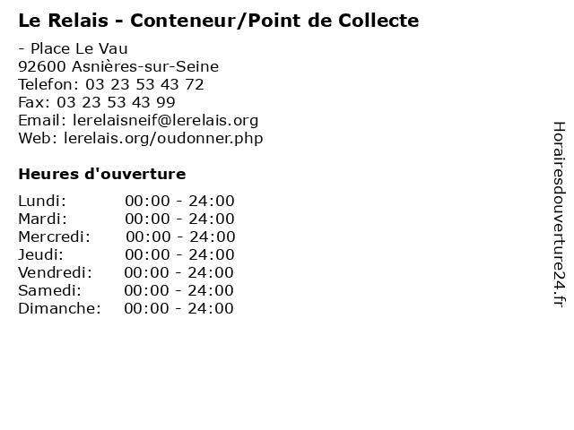 Termes de recherche pour Le Relais - Conteneur/Point de Collecte:relais, le, de, vêtements, point, collecte, dons, conteneur/point |