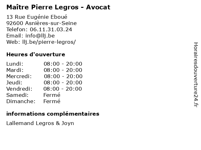 | Vendredi | 08:00-20:00 |