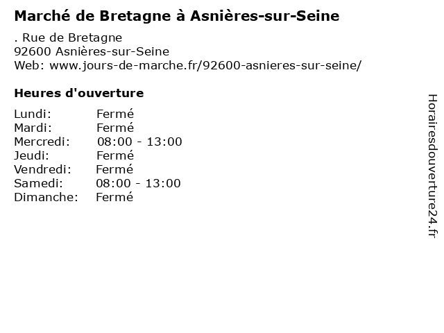 | Mercredi | 08:00-13:00 |