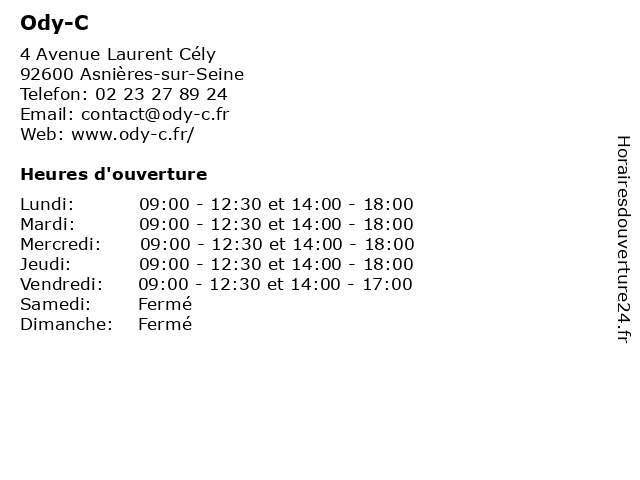 | Lundi | 09:00-12:30 et 14:00-18:00 |
