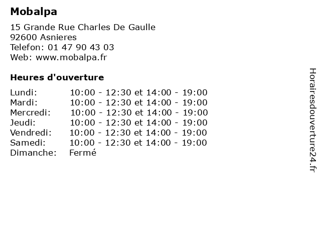 | Lundi | 10:00-12:30 et 14:00-19:00 |