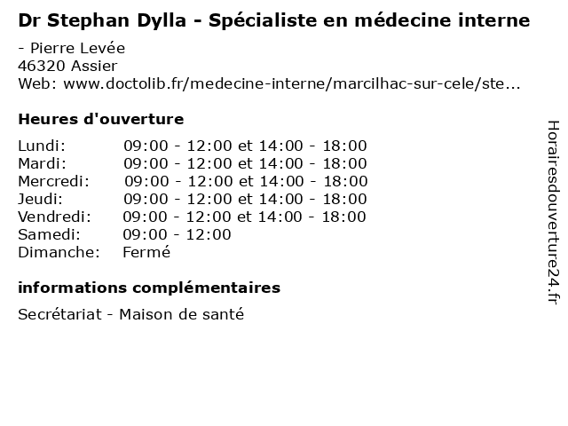 | Lundi | 09:00-12:00 et 14:00-18:00 |