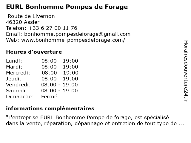 Termes de recherche pour EURL Bonhomme Pompes de Forage:de, bonhomme, pompes, eurl, forage |