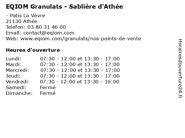 | Lundi | 07:30-12:00 et 13:30-17:00 |