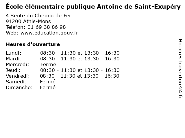 1 École élémentaire publique Antoine de Saint-Exupéry (Distance: 8,64 km) . Rue Henri Dunant, 91160 Longjumeau antoine, cours, de, exupéry, publique, saint, services, école, élémentaire 2 École maternelle publique Antoine de Saint-Exupéry (Distance: 0,11 km) 24 Rue de la Montagne de Mons, 91200 Athis-Mons antoine, cours, de, exupéry, maternelle, publique, saint, services, école 3 École maternelle publique Antoine de Saint-Exupéry (Distance: 1,42 km) 5 Rue de la Courre aux Lièvres, 94480 Ablon-sur-Seine antoine, de, ecole, education, exupéry, maternelle, publique, saint, services, école 4 École élémentaire publique Jules Ferry (Distance: 2,87 km) . Rue Dugrès, 91550 Paray-Vieille-Poste cours, ferry, jules, publique, services, école, élémentaire 5 École élémentaire publique Le belvédère (Distance: 3,21 km) 97 Avenue Henri Barbusse, 91210 Draveil belvédère, cours, le, publique, servicios, école, élémentaire 6 École élémentaire publique Pierre et Marie Curie (Distance: 3,21 km) 97 Avenue Henri Barbusse, 91210 Draveil cours, curie, et, marie, pierre, publique, servicios, école, élémentaire |