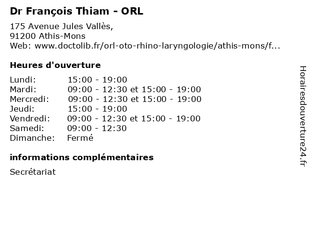 | Mercredi | 09:00-12:30 et 15:00-19:00 |