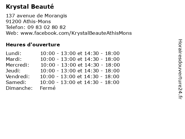 | Mercredi | 10:00-13:00 et 14:30-18:00 |