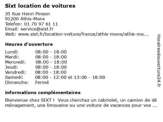 1 Sixt location de voitures (Distance: 12,36 km) 15 Avenue De La Baltique, 91140 Villebon-sur-Yvette de, location, service de chauffeurs, service de navette aéroport, sixt, voitures 2 Sixt location de voitures (Distance: 15,02 km) 2 Route De Limours, 91290 Arpajon de, location, service de chauffeurs, service de navette aéroport, sixt, voitures 3 Sixt location de voitures (Distance: 16,87 km) 39 Avenue Louis Breguet, 78140 Vélizy-Villacoublay de, location, service de chauffeurs, service de navette aéroport, sixt, voitures 4 Sixt location de voitures (Distance: 17,09 km) 33 T Avenue Edouard Vaillant, 92100 Boulogne Billancourt agence de location de camionnettes, agence de location de camions, de, location, service de chauffeurs, service de navette aéroport, sixt, voitures 5 Enterprise Location Voiture et Utilitaire - Athis-Mons (Distance: 0,34 km) 119 Avenue Francois Mitterrand, 91200 Athis-Mons athis, enterprise, et, location, mons, utilitaire, voiture 6 Yespark, location de parking au mois - Terrasse/Plateau - Juvisy sur Orge (Distance: 0,81 km) 5 Rue Nouvelle, 91260 Juvisy-sur-Orge au, de, juvisy, location, mois, orge, parking, sur, terrasse/plateau, yespark |