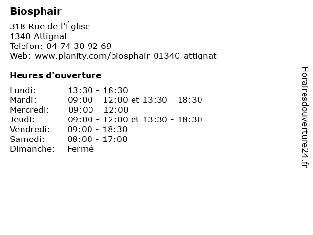 | Mardi | 09:00-12:00 et 13:30-18:30 |