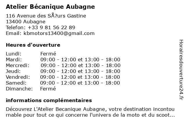 | Samedi | 09:00-12:00 et 13:00-18:00 |