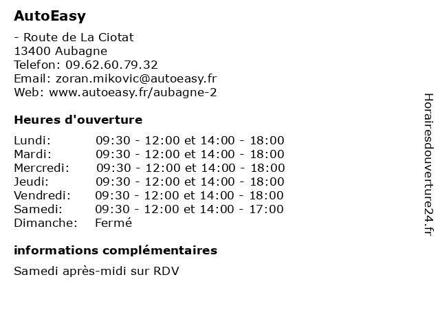 | Lundi | 09:30-12:00 et 14:00-18:00 |
