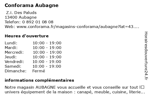 1 Conforama - Dépôt 2 (Distance: 0,69 km) 101 Avenue Mistral, 13400 Aubagne ameublement, conforama, décoration, dépôt, maison, meubles 2 Conforama (Distance: 1,44 km) n/a ZI Des Paluds, 13685 Aubagne conforama, decoration, equipements, fournitures, meubles 3 Conforama Marseille Sormiou (Distance: 16,52 km) Chemin du roy d'espagne, 13009 Marseille conforama, magasin d'ameublement et de décoration, magasin d'informatique, magasin d'électroménagers, magasin de literie, magasin de luminaires, magasin de tapis, marseille, réaménagement de cuisines, sormiou 4 Conforama - Dépôt (Distance: 17,11 km) - Chemin du roy d'espagne, 13009 Marseille ameublement, conforama, décoration, dépôt, maison, meubles 5 La Compagnie du Lit (Aubagne) (Distance: 0,23 km) Chemin des Bonnes Nouvelles, 13400 Aubagne alèse, aubagne, compagnie, couette, dosseret, draps, du, la, linge de lit, lit, literie, matelas, oreiller, pieds de lit, sommier, surmatelas 6 Alinea (Distance: 0,46 km) . ZI des Paluds, 13400 Aubagne alinea, alineadéco, aménagement, décoration, luminaires, maison, meubles, mobilier |