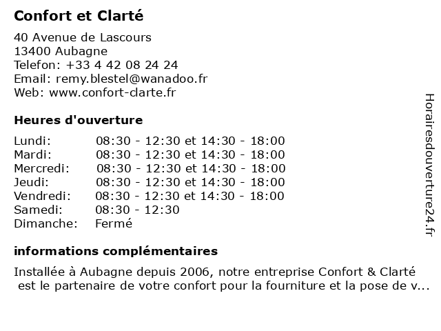 | Mardi | 08:30-12:30 et 14:30-18:00 |