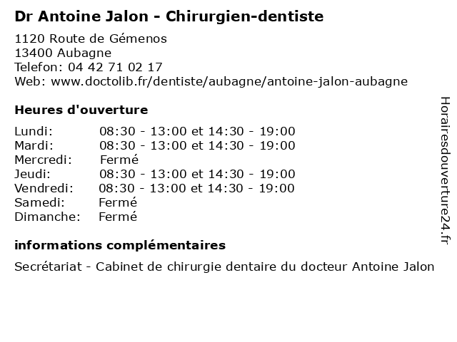 | Lundi | 08:30-13:00 et 14:30-19:00 |