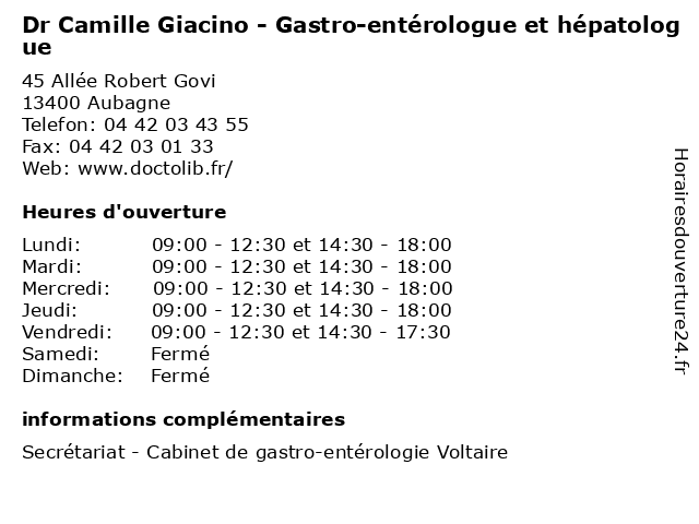 | Lundi | 09:00-12:30 et 14:30-18:00 |