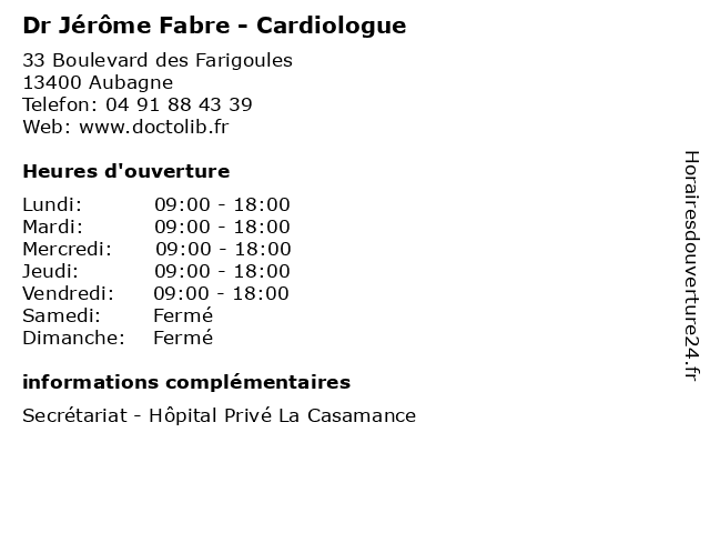 1 Dr Martine Dours - Cardiologue - secrétariat (Distance: 0,00 km) 33 Boulevard des Farigoules, 13400 Aubagne cardiologue, consultation, docteur, dours, dr, martine, med, médecin, médecine, secrétariat, traitement 2 Dr Jacques Adelson - Cardiologue (Distance: 0,00 km) 33 Boulevard des Farigoules, 13400 Aubagne adelson, cardiologue, consultation, docteur, dr, jacques, med, médecin, médecine, secrétariat, traitement 3 Medecin Patrick Moro (Cardiologue) (Distance: 9,70 km) 12 Rue des Electriciens, 13012 Marseille cardiologue, docteur, medecin, moro, patrick, sante, services 4 Dr Romain Vitoux - Cardiologue - secrétariat (Distance: 11,18 km) 26 Boulevard de Louvain, 13008 Marseille cardiologue, dr, médecins, médicaments, romain, santé, secrétariat, spécialiste, vitoux 5 Medecin Gerard Lagrange (Cardiologue) (Distance: 11,88 km) 3 Avenue Jules Cantini, 13006 Marseille cardiologue, docteur, gerard, lagrange, medecin, sante, services 6 Medecin Yvan Le Dolley (Cardiologue) (Distance: 11,88 km) 3 Avenue Jules Cantini, 13006 Marseille cardiologue, docteur, dolley, le, medecin, sante, services, yvan |