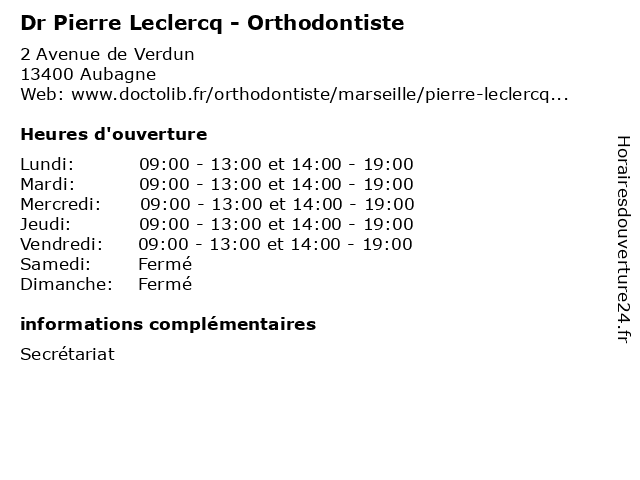 Lundi | 09:00-13:00 et 14:00-19:00 |