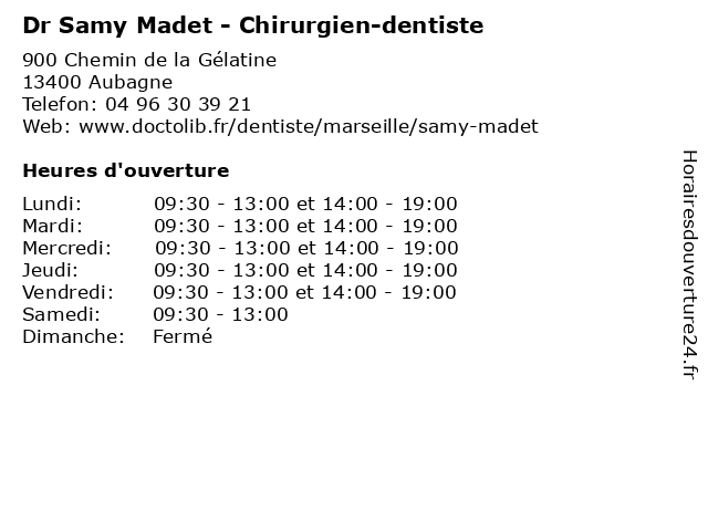 | Lundi | 09:30-13:00 et 14:00-19:00 |