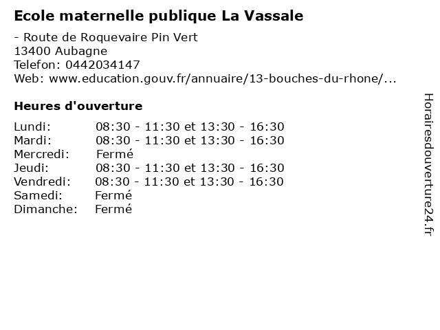 Lundi | 08:30-11:30 et 13:30-16:30 |
