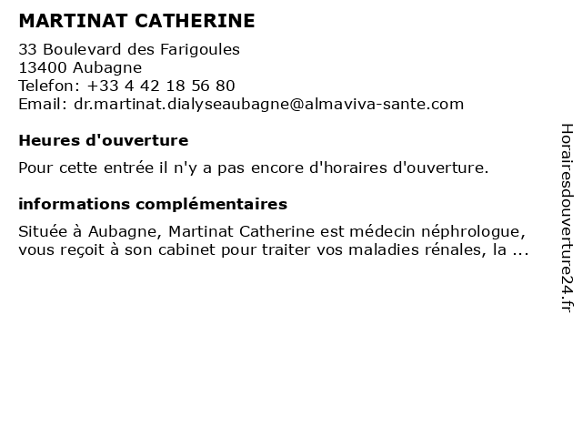 1 Catherine Maurel - Sage-femme (Distance: 3,37 km) 11 Avenue Joseph Fallen, 13400 Aubagne catherine, femme, maurel, medical, sage, sagefemme 2 Catherine Fernandes - Masseur-kinésithérapeute (Distance: 3,71 km) 30 a Avenue Elzeard Rougier, 13400 Aubagne catherine, consultation, docteur, fernandes, kinésithérapeute, masseur, med, médecin, médecine, traitement 3 Catherine Mottura - Sage-femme - secrétariat (Distance: 3,99 km) s/n Avenue de Verdun, 13400 Aubagne catherine, diagnostic, echographie, femme, maternité, mottura, sage, sage-femme, secrétariat 4 Dr.Catherine Autric-Médecine générale (Distance: 9,25 km) 128 Chemin Jean Roubin, 13009 Marseille autric, consultation, docteur, dr.catherine, générale, médecine, santé 5 Dr Catherine Larra - Chirurgien-dentiste - secrétariat (Distance: 11,13 km) - Allée de la Demande, 13013 Marseille catherine, chirurgien, consultation, dentiste, docteur, dr, larra, med, secrétariat 6 Dr Catherine Mattout - Chirurugien dentiste (Distance: 11,53 km) 224 Avenue du Prado, 13008 Marseille catherine, chirurugien, dentaire, dentiste, dr, implantologie, mattout, parodontologie |