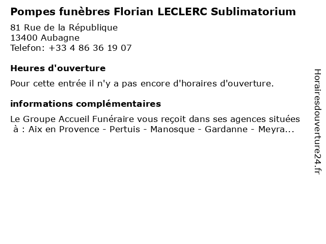 | Appeler Pompes funèbres Florian LECLERC Sublimatorium | |